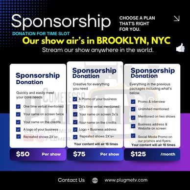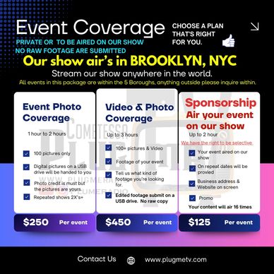 Looking to boost your brand? PlugmeTV offers exciting opportunities for artists, businesses, and local entrepreneurs. Get ready for upcoming interviews and commercial slots that will put you in the spotlight. Whether you're a rising star or a well-established brand, we've got the platform to help you reach a wider audience. Want to share your vision? Our Brooklyn-based TV studio is ready to share your talent even for your MOVIE PREMIER.